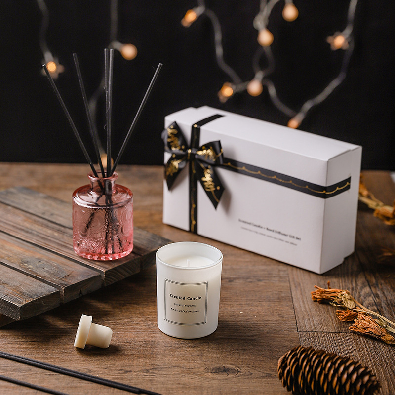 Diseño de moda Decoración de lujo para el hogar Cumpleaños personalizado Regalos DE BODA Velas perfumadas de cera de soja con difusor de caña de aroma Juego de regalo